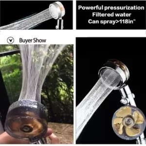 Nuestro cabezal de ducha al tener una hélice, permite regular de manera optima la presión de tu ducha, junto con filtrar todas esas aguas duras que te dejan el pelo duro!!