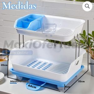 Practico y moderno secador de platos de 2 pisos multifuncional, perfecto para organizar tu vajilla y cubiertos.