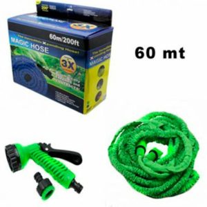 Esta Manguera Retractil es la unica que se expande al abrir el grifo de agua y se va agrandando hasta alcanzar su tamaño de 60 Metros. Al cerrar la llave se va haciendo mas pequeña hasta alcanzar su tamaño normal o minimo tamaño.